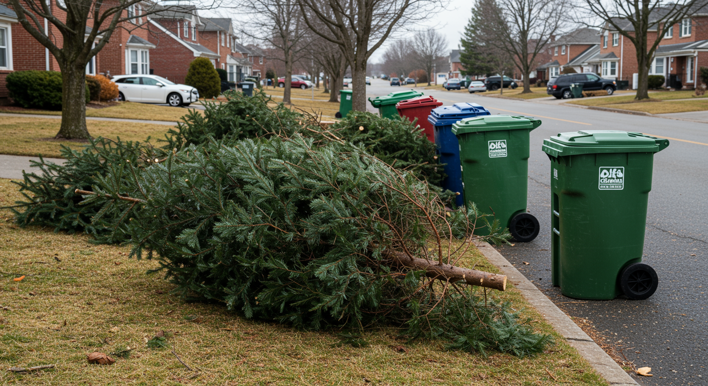 Before leaving your tree out for pickup be sure to remove all lights, ornaments, and tinsel. Any trimmings or branches from the tree can be placed with the tree at the curbside. Trees over 10 feet in height should be cut in half. NO artificial or flocked tree can be taken, as the trees that are picked up are composted and the flocking materials would damage the machinery. Also do not leave the tree in a stand when leaving it out for pickup.