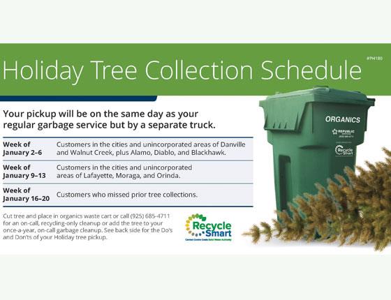 The Contra Costa Solid Waste Authority each year conducts a tree collection in the weeks following Jan. 1, 2017, with each week featuring pickups in the various municipalities that make up the authority.