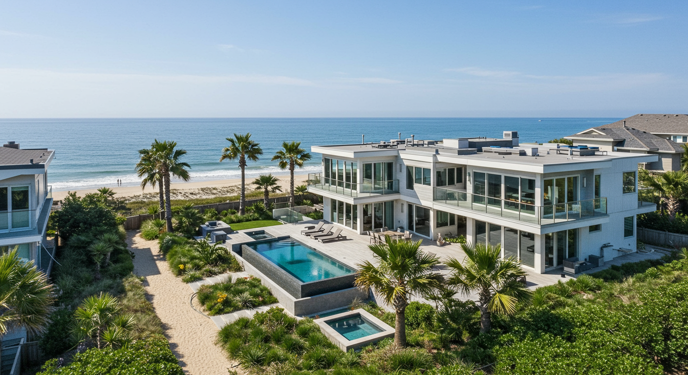 Modern oceanfront estate epitomizes the perfect fusion of luxury and coastal living in exclusive 10 home enclave. Backyard paradise has hot tub, heated pool, Koi pond, sandy beach area, and private path leading to secluded beach. Multiple balconies invite you to savor the ocean views. Fully furnished interior complements the beach with dynamic tile, coastal decor, enchanting lighting. Elevator for ease of moving between floors. Primary suite encompasses entire third floor with dual baths and walk-ins, den with wet bar, laundry. Dual A/C garages. Designed to withstand coastal living with marine-grade paint, impact glass and more! |