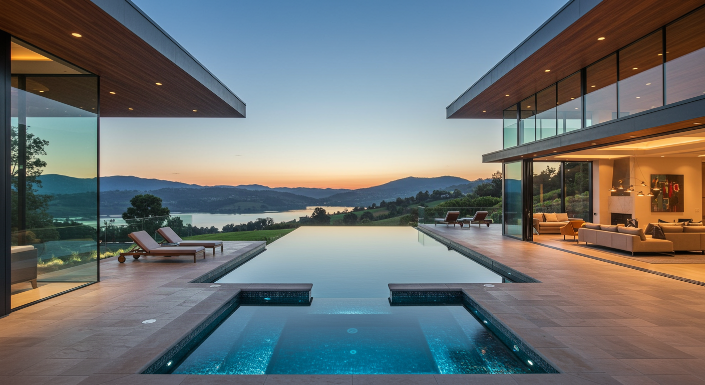 With its secluded location, unmatched views, and close proximity to downtown Napa, Wildhorse Estate functions equally well as either a serene retreat or the perfect entertaining showpiece. The home was designed with expansive indoor-outdoor entertaining in mind. The main living level surrounds a large outdoor living space that includes a 70 foot long infinity pool with integrated spa that overlooks Lake Frey and has views to the Bay and Mount Diablo. The kitchen area, living room, and master bedroom all have pocketing glass walls that open to the main outdoor living space. In addition, the far side of the living room has pocketing glass walls that open on either side of the stone fireplace with views overlooking Lake Madigan. Not to be left out, the dining room has a glass wall that opens to attractive boulders retained during construction with spectacular views beyond.