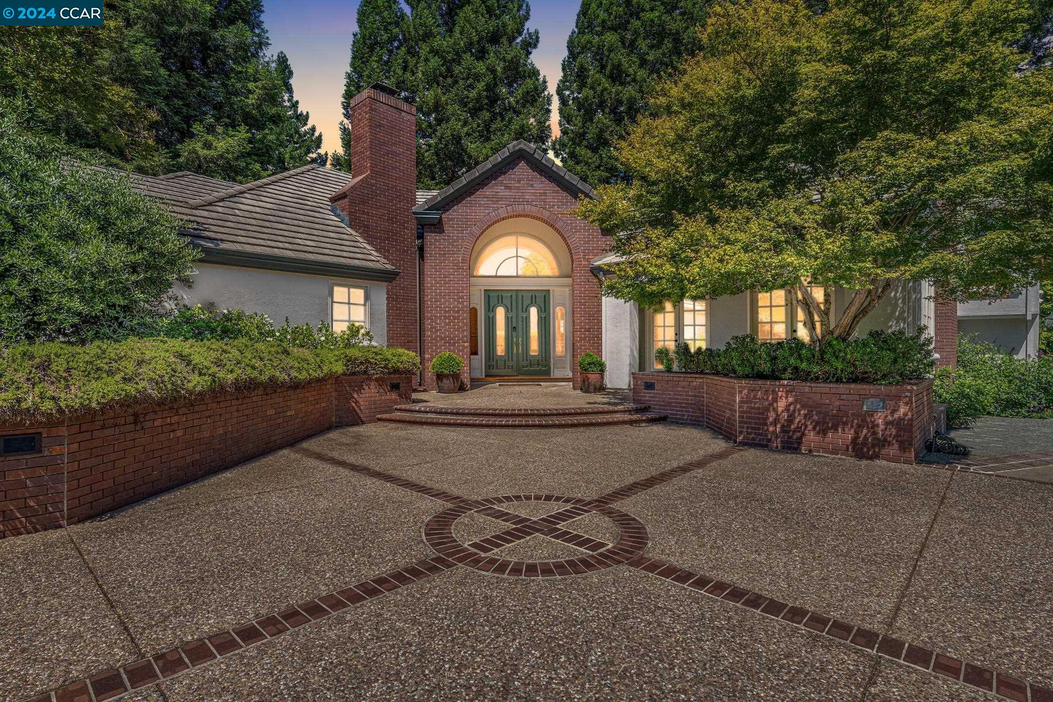 This exquisite Gated Westside Alamo home boasts an impressive 5322 sq. ft. in the main house, plus an additional detached 290+/- sq. ft. in the pool or guest house. Step into a grand foyer with soaring ceilings and parquet hardwood flooring. The living room features a marble fireplace and French doors, creating an impressive first statement. The Library is adorned with extensive wood trim, paneled wood walls and a fireplace. Family room is complete with custom built-ins, brick fireplace, and large wet bar. White kitchen offering granite countertops, double oven, built-in refrigerator, an entertainer's butler kitchen, and large walk-in pantry. The open floor plan and soaring ceilings create a seamless flow, with French doors opening to the serene pool and yard. Two primary suites have been recently renovated, offering updated bathrooms, large closets, and new carpet, making them ideal for multi-generational families or an au-pair setup. The sprawling .51acre, flat lot, features a sparkling pool, a large grassy area, mature trees and many rose bushes. Adjacent to the pool, you'll find the pool house or guest house which includes a kitchenette and full bath. Enjoy luxury living on one of the most desirable streets on the westside of Alamo. Come in and see for yourself!