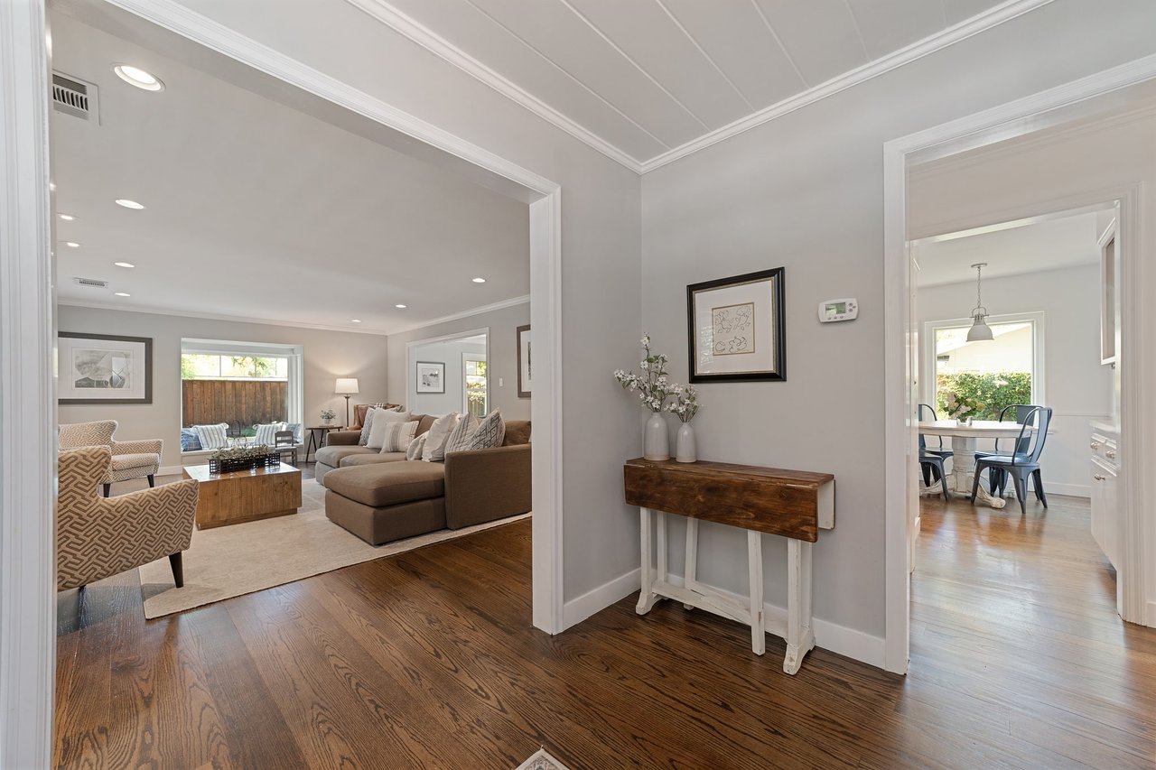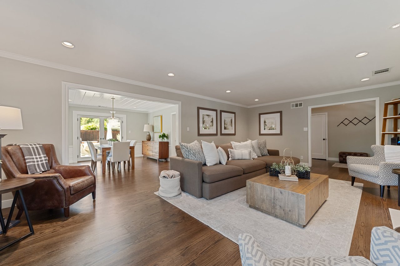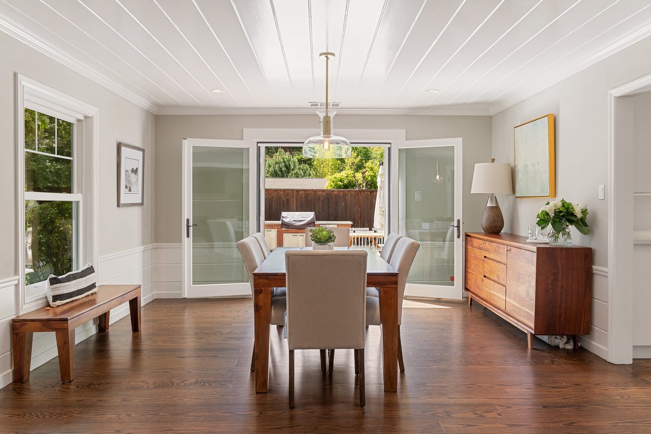 This timeless rancher on the Westside of Alamo sits behind a white picket fence in a quiet cul-de-sac just minutes from shopping, the Iron Horse Trail and close freeway access. Brand new carpet, oak hardwood floors, and an abundance of natural light. The updated white kitchen, offers quartz countertops, white subway tile backsplash, stainless steel sink, and breakfast nook. Formal dining room with French doors leading to the patio. The laundry room has new quartz countertops, tile flooring and a convenient rear door for easy access to the backyard patio. The hallway bathroom offers a double vanity with Carrera countertop and decorator tiles. The master suite is beautifully updated and tastefully selected master bathroom includes marble floors, a double vanity and gorgeous shower. Entertainer’s dream with mature trees, a built-in BBQ, fire pit, she-shed and darling playhouse. Detached garage and additional covered carport allow for extra vehicles, RV space or storage. www.9WoodCourt.com